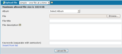 On the upload file screen, choose an album from the "Album" dropdown